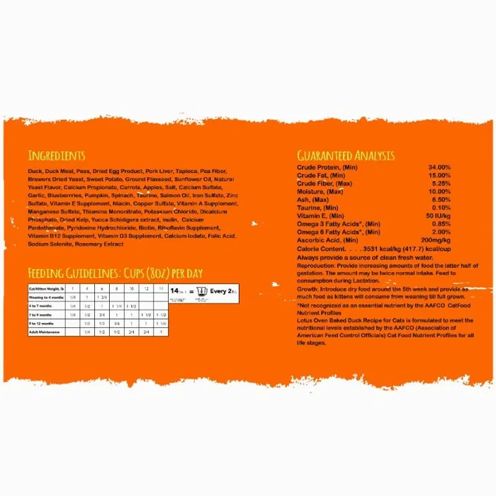 Lotus Oven-baked Kibble Duck Grain-free Dry Cat Food 2.2-lb
