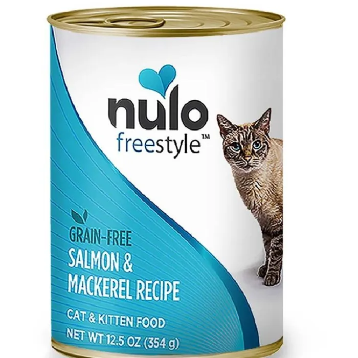 Give your cat a meal made with premium ingredients you can trust with Nulo's Freestyle Cat Grain-Free Salmon & Mackerel Recipe! This feline formula is crafted with real salmon as the very first ingredient, followed by turkey, turkey liver, whitefish and mackerel for the high-quality protein your pet needs to fuel her muscles. She will love the texture of every tender bite and the irresistible taste of the lip-smacking gravy. And while you won’t find any grains, corn, wheat or anything artificial in this palatable pate, you will find superfoods like cranberries, kelp and pumpkin, vitamins, minerals, healthy omegas and taurine—an amino acid that helps support your cat’s overall health. Just pop open a can with the easy-pull tab and watch your cat purr with approval!